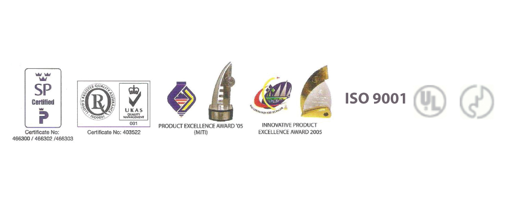 Your satisfaction and trust is our driving force, motivating us to serve you with the highest quality products. Each model undergoes vigorous testing process and evaluations. Our products are certified by recognized global certification bodies such as Underwriters Laboratories (USA), SP Technical Research Institute of Sweden and JIS (Japan Industrial Standards).